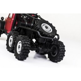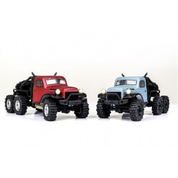 Merkmale • Fahrgestell mit echtem Leiterrahmen • 6x6 Allrad-Antriebssystem • 100T Motor mit hohem Drehmoment eingebaut • Hohe Drehmomentübertragung (FDL 104:1 ) • High-Grip Big Block M/T-Reifen • 1,0-Zoll-Beadlock-LKW-Felgen • Maßstabgetreue Ritzel- und Tellerradachsen • Wasserdichte Elektronik • Matt lackierte Lexan-Karosserie mit klaren Fenstern (in 2 Farben erhältlich) • LED-Front- und Rückleuchten eingebaut • Eloxierte Aluminium-Gehäuseschienen • Funktioneller Ersatzreifen und Werkzeugkasten • Platz für Extra-Akku • Am Chassis montiertes Servo mit Panhardstab • Inklusive 2,4GHz Fernsteuerung • 2-in1-Empfänger/Regler-Einheit eingebaut • Digital-Servo mit Metallgetriebe eingebaut • Inklusive 600mAh 2S LiPo Akku und USB-Ladegerät • Lange Fahrzeit bis zu 30 Minuten