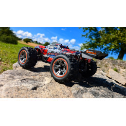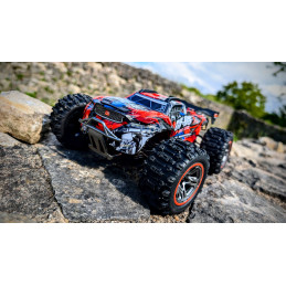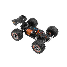 Technische Daten: • Länge: 282 mm • Breite: 114 mm • Höhe: 137 mm • Radstand: 155 mm • Bodenfreiheit: 34 mm • Reifen: Ø 56mm • Maßstab: 1:18 • Motor: Brushed 55T • Sender und Empfänger/Regler-Einheit: 2,4GHz